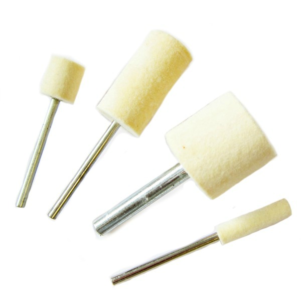 Polishing precious metals in Jewellery industry – Working on gold and silver, Platinum, Palladium etc. Jewellers usually require smaller felts on a 2.35mm spindle with fine compounds such as Rouge.